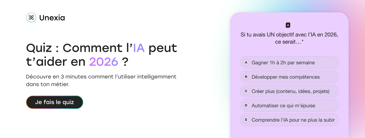 Le vrai défi n'est pas technique, c'est méthodologique : apprendre à adapter l'IA à ton métier marketing et à garder ton authenticité. C'est justement ce qu'on enseigne chez Unexia.
